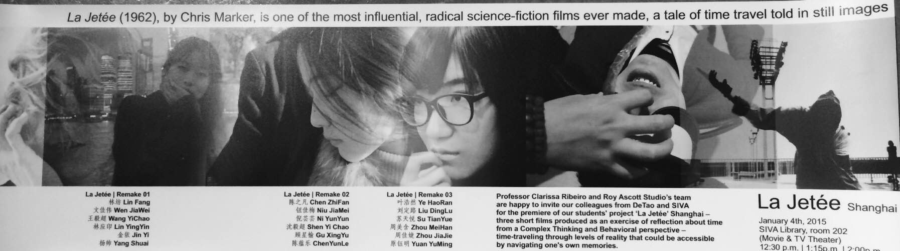 La Jetée (French pronunciation: [la ʒəte]) (“The Jetty”, here referring to an outdoor viewing pier at an airport), is a 1962 French science-fiction featurette by Chris Marker. Constructed almost entirely from still photos, it tells the story of a post-nuclear war experiment in time travel. It is shot in black and white.